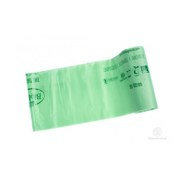 Kompostovateľné vrecia vyrobené na báze kukurice, ideálne na zber bioodpadu z domácností a záhrad. Dajú sa použiť aj ako ekologická alteratíva plastových vreciek na zber zmiešaného komunálneho odpadu. Sú rozložiteľné v komposte v priebehu cca 40 dní. Objem 80 l. Balenie 20 ks.