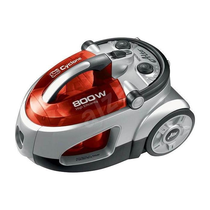 Bezvreckový podlahový vysávač s teleskopickou hubicou. Cyklónový fi ltračný systém, umývateľný H.E.P.A. fi lter, 5-stupňový systém filtrácie. Antikorová teleskopická trubica, 2 parkovacie polohy na podlahovú hubicu, pogumované predné kolieska, automatické odvíjanie kábla, umývateľná nádoba na prach, elektronická regulácia nasávacieho výkonu, tepelná poistka proti prehriatiu motora, univerzálna podlahová hubica s výsuvnou kefou. Súčasťou výbavy je štrbinová hubica a kefová hubica na čalúnenie. Vysokoúčinný 800 W ECO motor, kábel 5 m, akčný rádius 6,5 m. Farba červená.