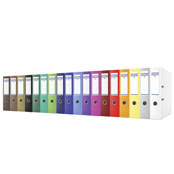Zakladač formátu A4 s kvalitnou pákovou mechanikou, vyrobený z 2,1 mm hrubého kartónu s gramážou 1290 g/m². Potiahnutý ekologickou polypropylénovou fóliou (100 mic.) s textúrou podobnou plátnu. Vnútorná papierová podšívka. Vybavený chrbtovým krúžkom, vreckom s vymeniteľným chrbtovým štítkom a uzatváracím mechanizmom. Väčšie balenie 25 ks.