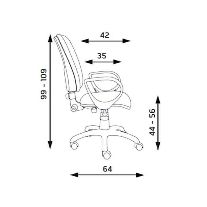 • Rozmery: šírka operadla 41,0 cm; výška operadla: 45,0 cm; šírka sedadla: 47,0 cm; hĺbka sedadla: 42,0 cm; nastaviteľná výška sedu: 44,0 - 56,0 cm.