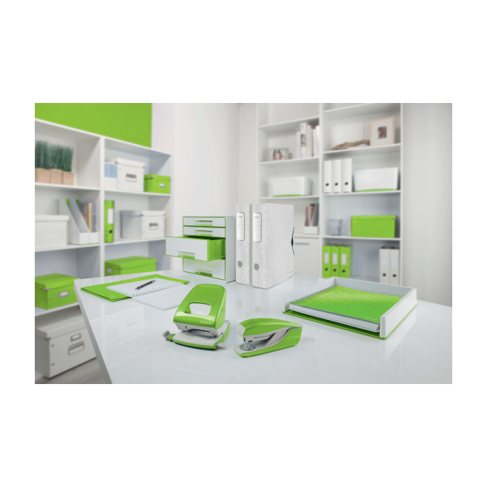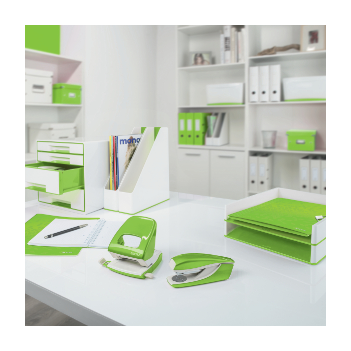 Dodajte svojmu pracovnému miestu alebo domácnosti farbu a skombinujte s ostatnými kancelárskymi výrobkami z radu Leitz WOW. Na spinky Leitz Power Performance P3, 24/6 a 26/6. Vrátane štartovacieho balenia. Praktický integrovaný vyberač spiniek. Farba metalická zelená.