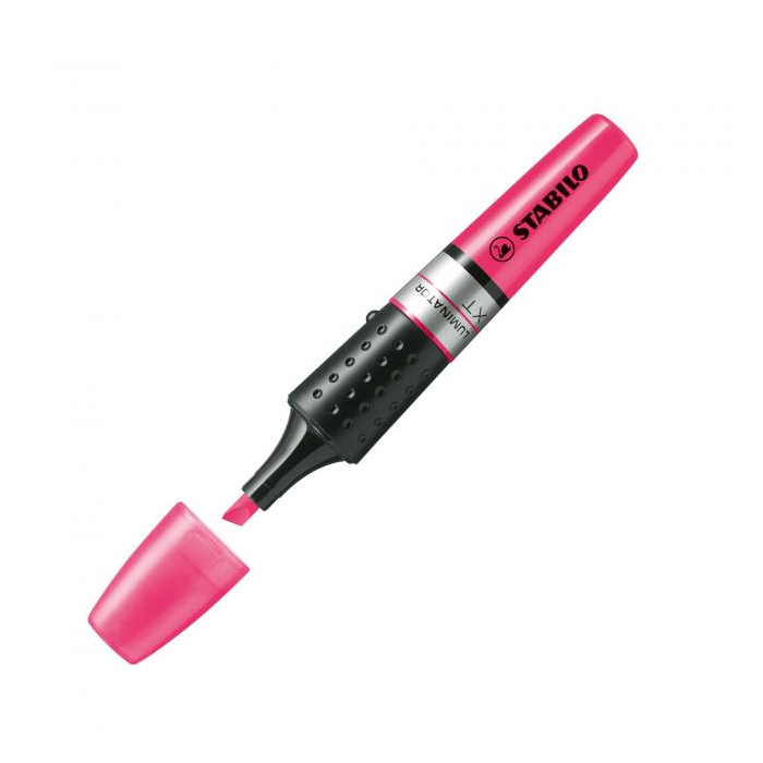 Zvýrazňovač neobyčajného dizajnu s väčším zásobníkom atramentu ako u bežných zvýrazňovačov a technológiou Anti‑Dry‑Out so 4 hodinami ochrany proti vysychaniu atramentu. Odolný voči zmenám atmosferického tlaku, nevytečie, vhodný napr. do lietadla. Atrament na vodnej báze vhodný pre prácu s papierom, kópiami a faxom, rovnomerná